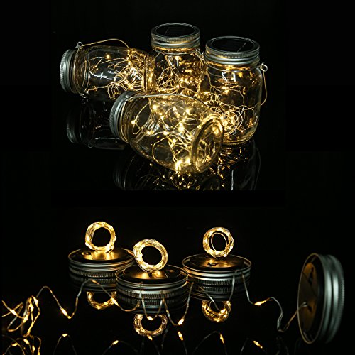 Solar Mason Jar Lights, Mason Jar & Handle Included, 20 LED Warm White Solar String Lights for Wedding Christmas Holiday Party Decorative Lighting, Garden Outdoor Patio Garden Path Decoration Lights