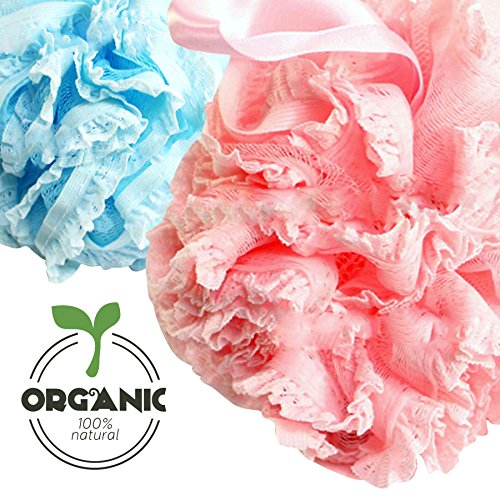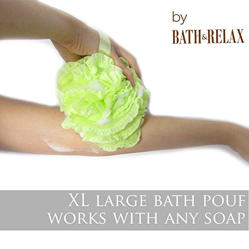 - LARGE, BIG, and FULL XL 60 grams Density High Quality Luxury Bath Pouf of Soft Mesh Loofah & Lace Fuller Richer Lather For Cleanse, Exfoliate, and Soothe Skin, Made to Last Long and Lather up