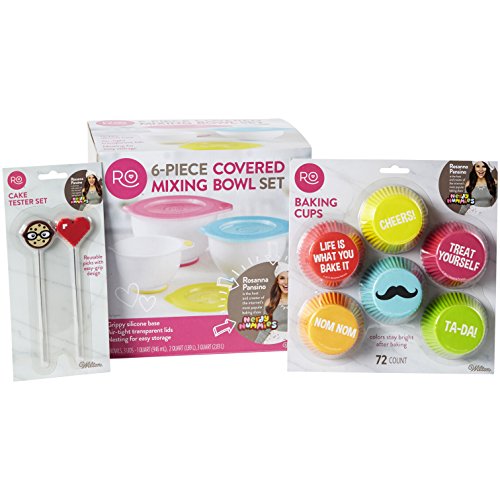 Bottom of baking cups feature cute messaging: Treat Yourself, Ta-Da!, Nom Nom, Life is What You Bake It, Cheers!, mustache image