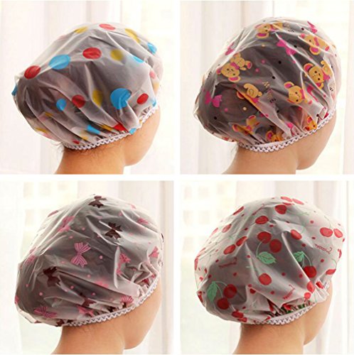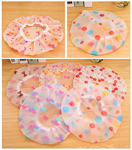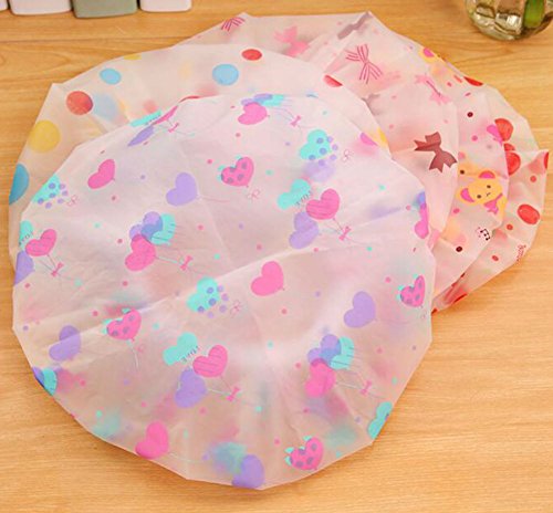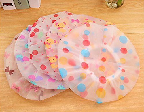 AKOAK 5 Pieces Reusable Waterproof EVA Plastic Lace Elastic Band Flower Printed Hat Environmental Protection Hair Bath Caps Shower Caps
