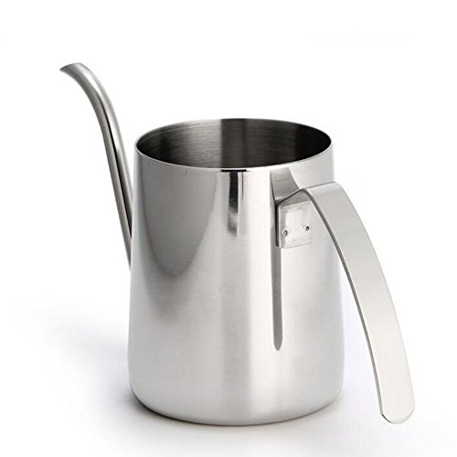Features: 1. Controllable outlet. Stainless steel martial is easy to clean. The border of mouth curves inside, which is smooth and won't hurt hands. 2. Unique handle, fashionable and elegant, comfortable to touch. 3. Teflon coating, non-stick, heat-resistant, corrosion-resistant, abrasion-resistant. 4. A good helper to brew coffee, make you as a coffee master at home. Parameters: 1. Material: high quality thickened stainless steel Teflon coating. 2. Size: 19cm/ 7.48in (length) * 7.2cm/2.83 in (diameter) * 7.5cm/2.95 in (height), Mouth diameter: 65mm/2.56in; Bottom diameter: 7.2cm/2.83 in 3. Capacity: 250ml 0