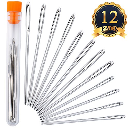 SUBANG 12 Pcs Needles Large-Eye Blunt Sewing Needles Quilting Yarn Needles Stainless Steel Sewing Knitters