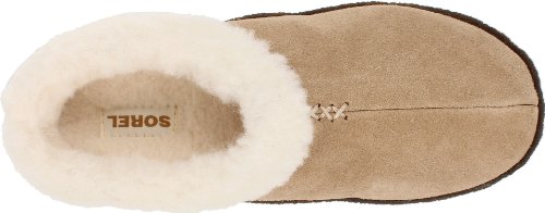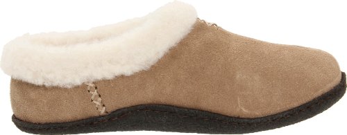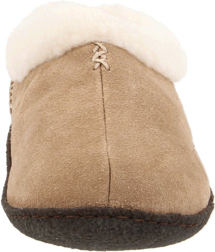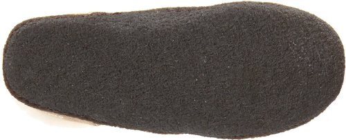 -. Feature : Slipper featuring cross-stitch detail, warm wool and acrylic lining, and traction outsole / Removable molded EVA comfort footbed