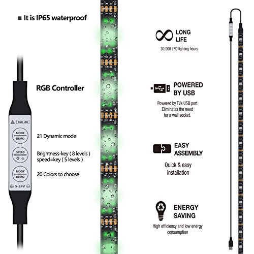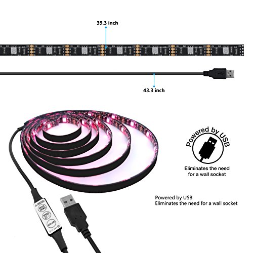 USB LED Light Strip, Costech 5050 RGB LED Light 20 Color Selection 1M(3Ft) TV Background Lighting Adhesive Tape Dust and Humidity Proof Built-in Controller for TV LCD, Monitors