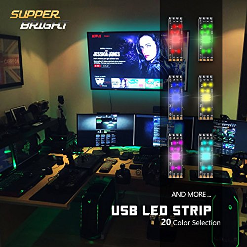 [RICH LIGHT EFFECT] - The USB LED Light Strip can cycle between 20 Color Selection arrays of colors, strobes, or cycling colors.