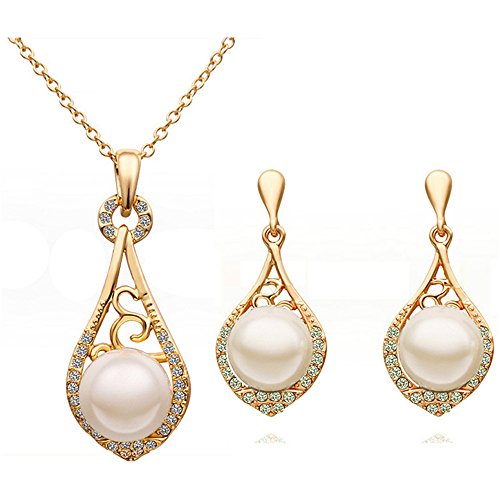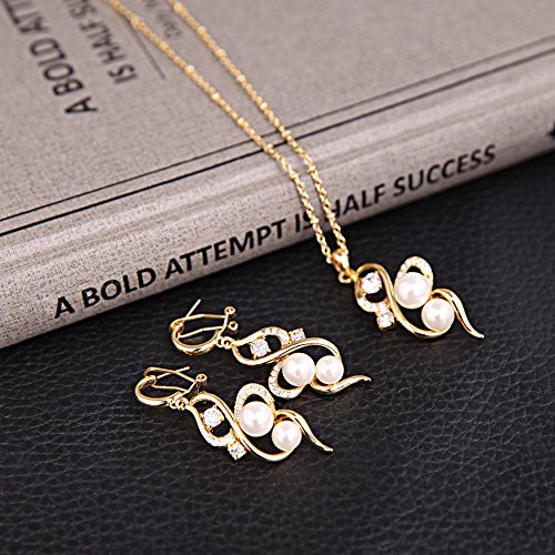 Design Details: There are two pearls in the middle of the pendant, surrounded by gold wave-shape frame. Its unique design makes the jewelry set a eye-catching style, bringing you more elegance. The pearl water-drop pendant and rose-gold decoration connection shows kind of exquisite, which is suitable to wear in multiple occasions.