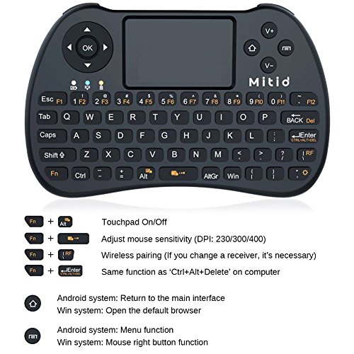 Mitid original 2.4G wireless mini keyboard with touchpad. Built-in rechargeable lithium battery.