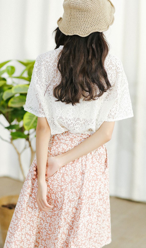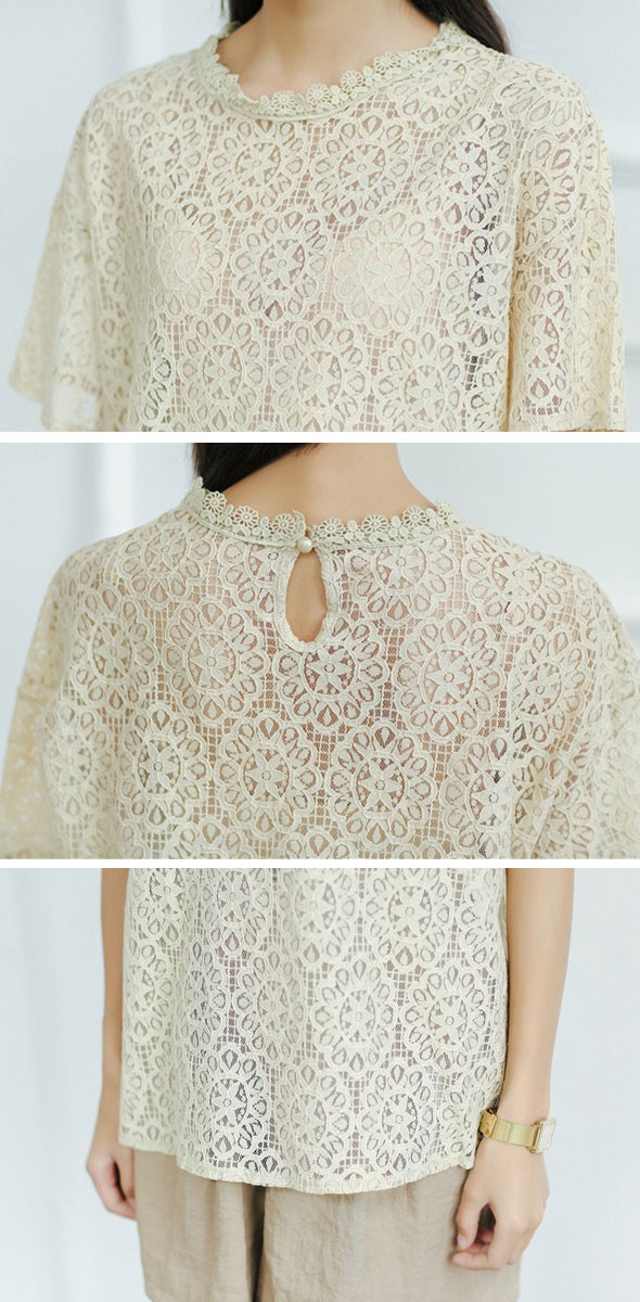 商品名□総レースシースルー半袖ブラウス全2色HMX529#t802t803【予約販売12月下旬より順次発送予定】 【送料無料】ブラウス 総レース シースルー 半袖