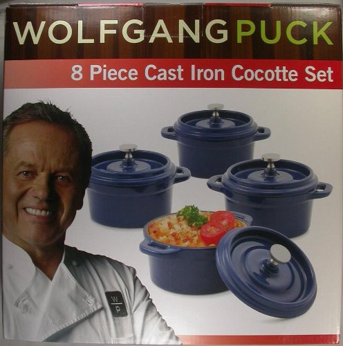 -. Title : Wolfgangpuck 8 Piece Cast Iron Cocotte Set, Blue Porclain Enamel