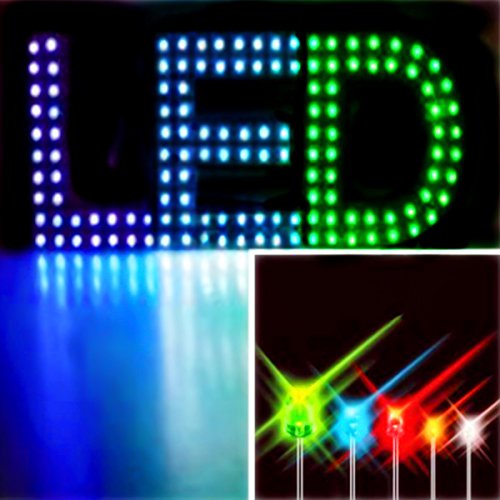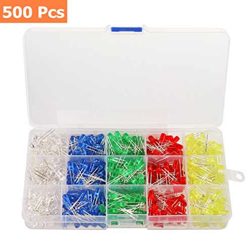 500pcs LED Diode Lights, KingSo 5 colors×100pcs 5mm Light Emitting Assorted Kit Electronics Components, Transparent Diffused Round Light Bulb for Arduino, White Red Orange Green Blue