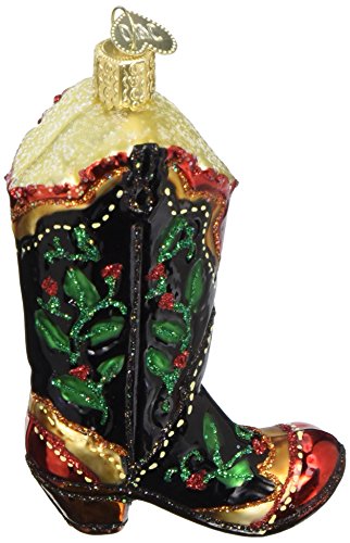 Old World Christmas Holly Berry Cowboy Boot Glass Blown Ornament