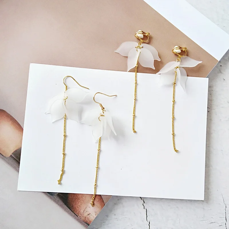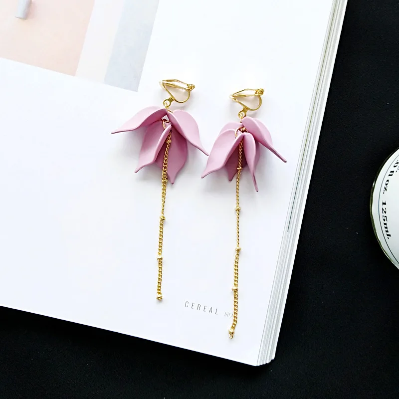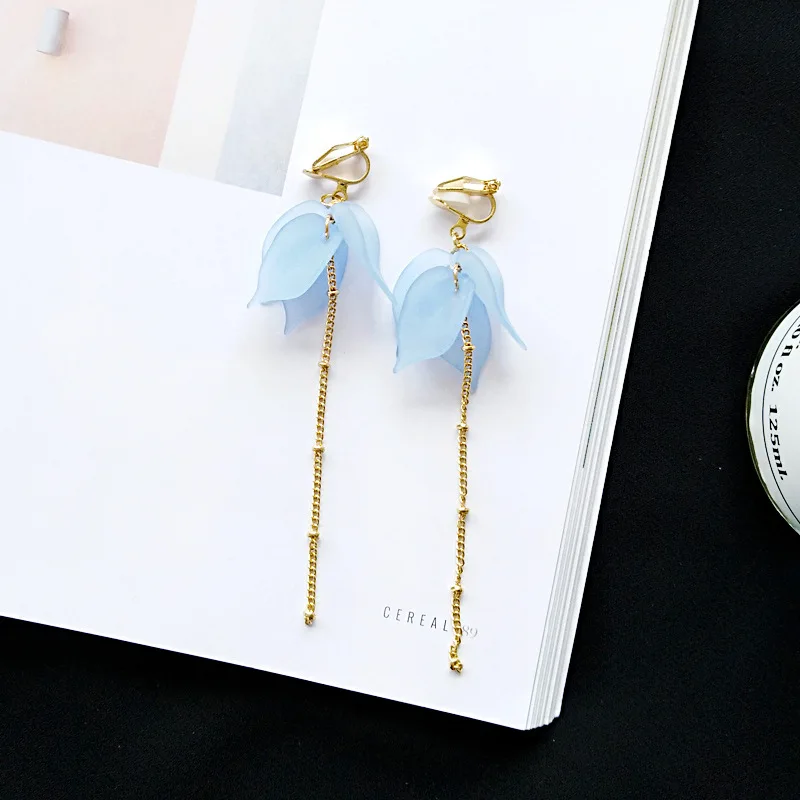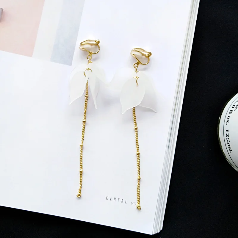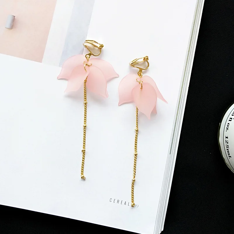 Pedant shape:Acrylic Petals Flower Long Earrings Without Piercing