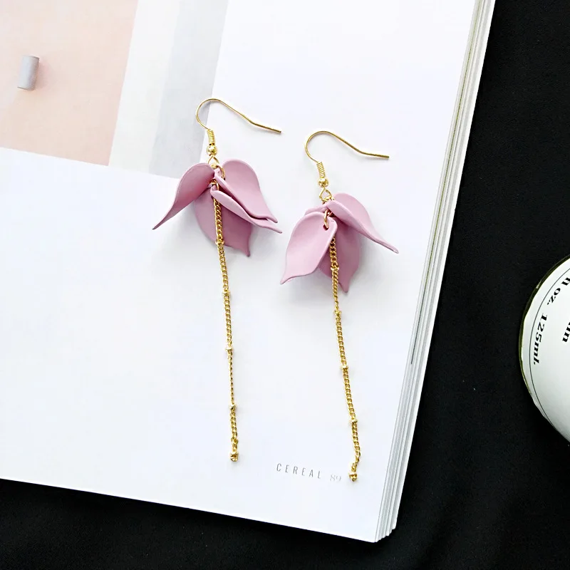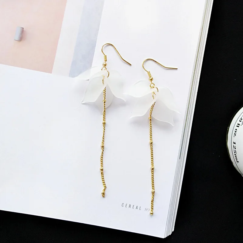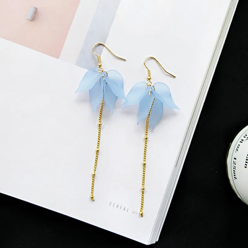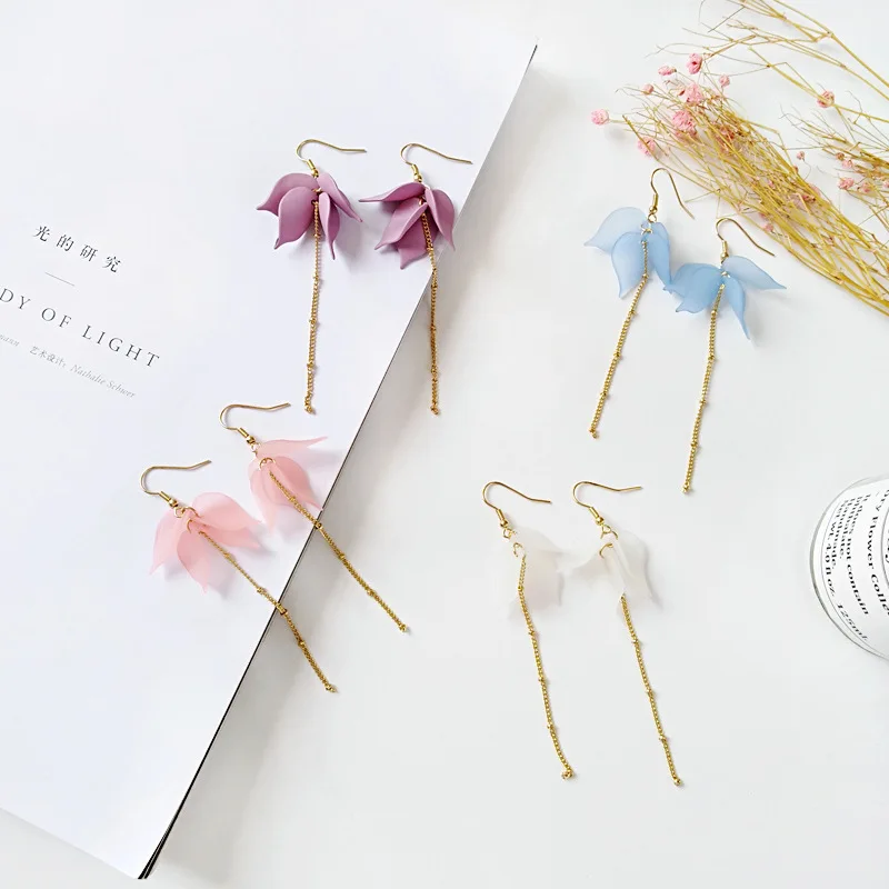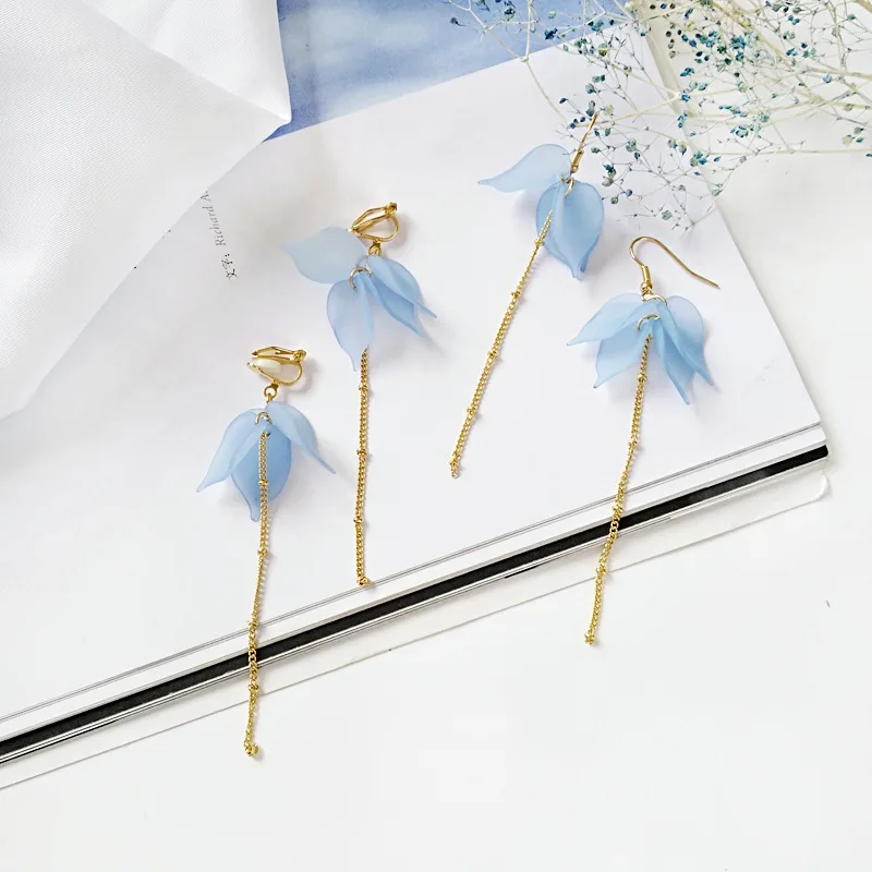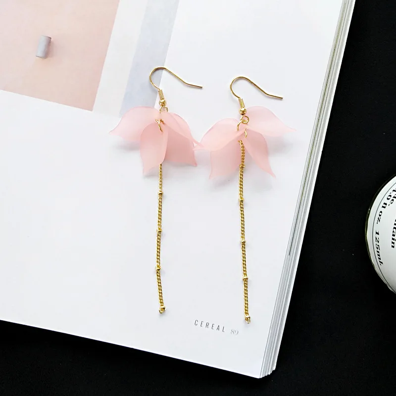 Pedant shape:Acrylic Petals Flower Long Earrings Without Piercing