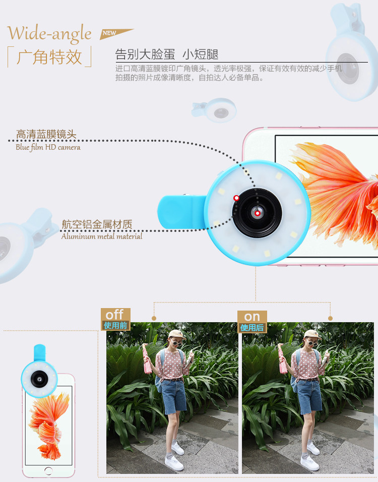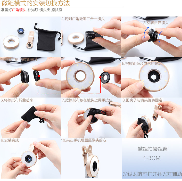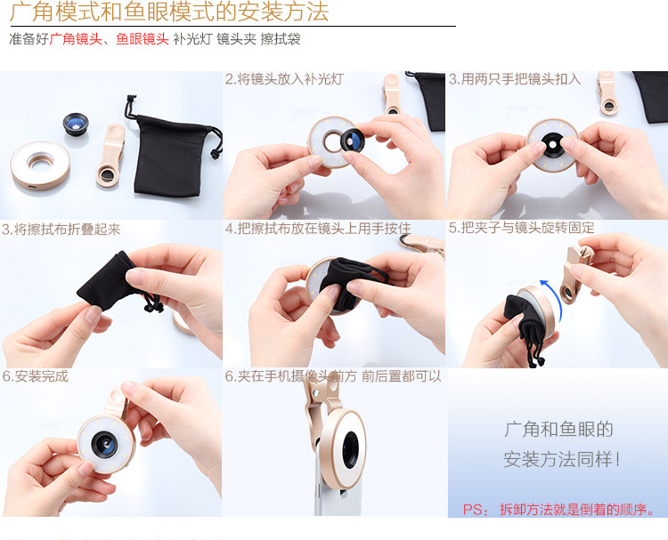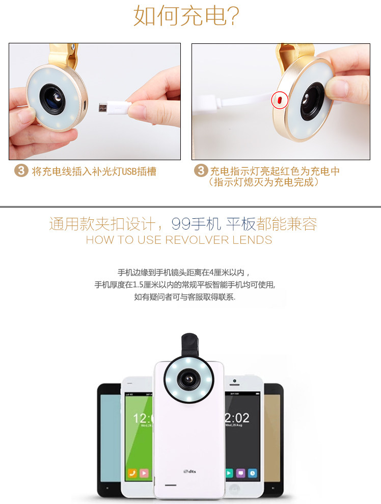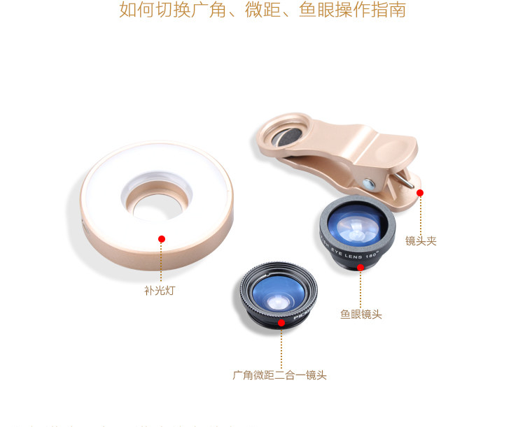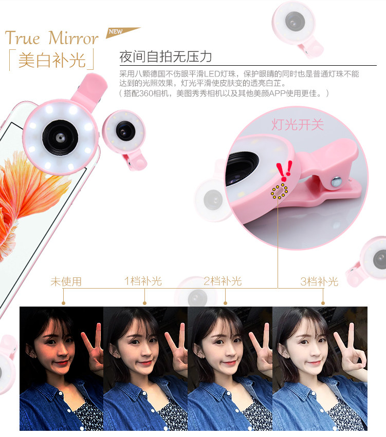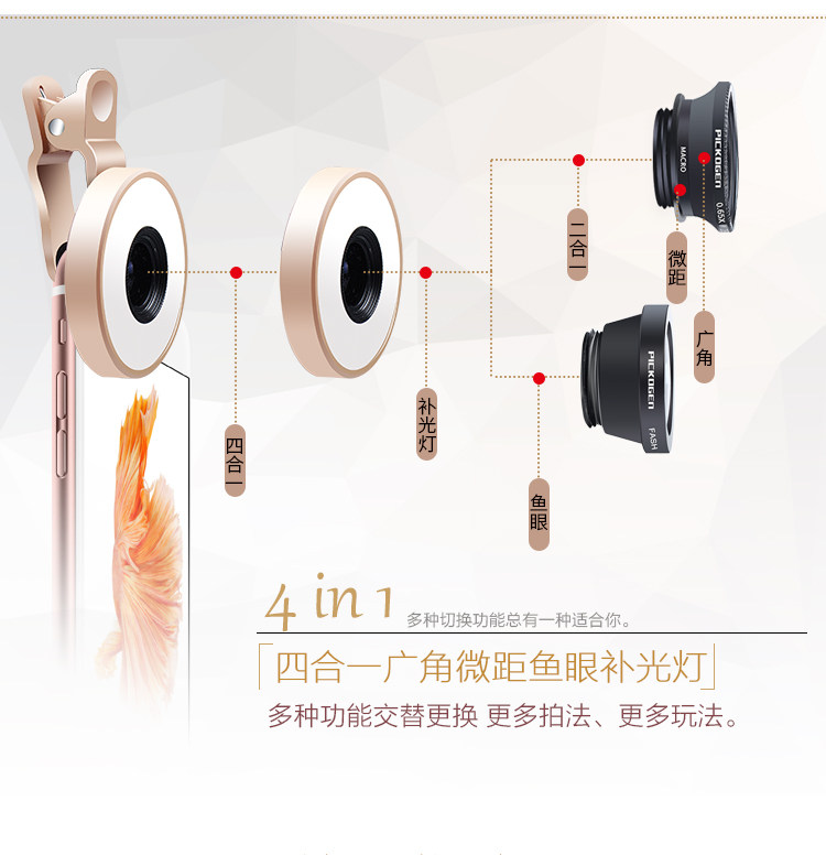 Pickogen LED 4-in-1 clip-on Camera Lens Package Smartphone Tablet