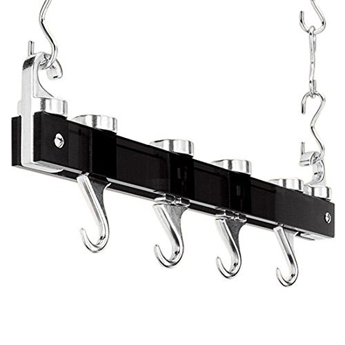 Es besteht aus 2 schweren schwarzen Kunststoff beschichteten Stabe. 2 x Endhaken (fur oben). 2 x Deckenhaken (eine Decke zu befestigen)