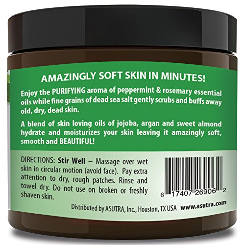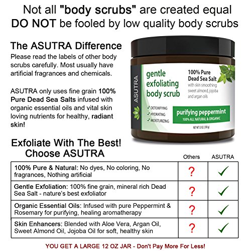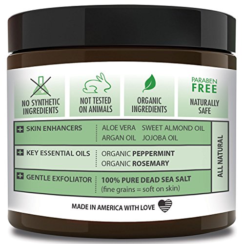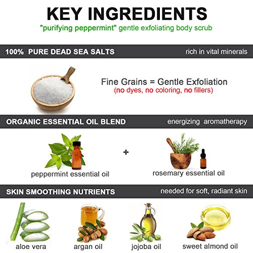 ORGANIC Exfoliating Body Scrub - “PURIFYING PEPPERMINT” - 100% Pure Dead Sea Salt Scrub / Ultra Hydrating & Moisturizing with SKIN SMOOTHING Jojoba, Sweet Almond & Argan Oils - 12oz