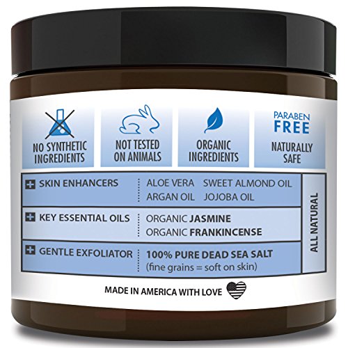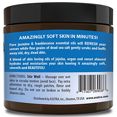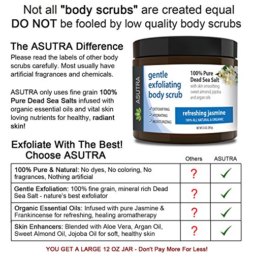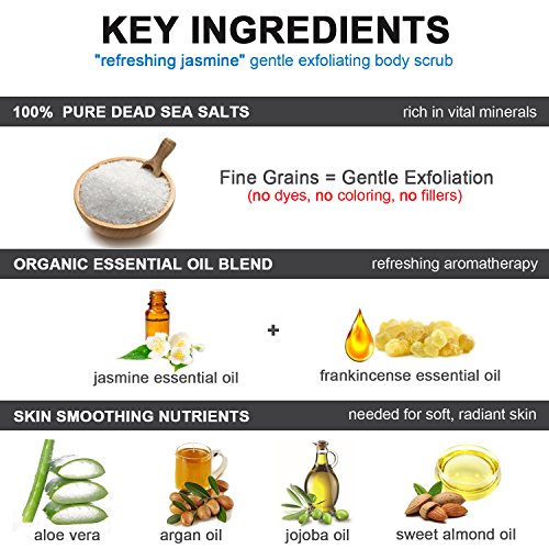 Best ORGANIC Exfoliating Body Scrub - "REFRESHING JASMINE" - 100% Pure Dead Sea Salt Scrub / Ultra Hydrating & Moisturizing with SKIN SMOOTHING Jojoba, Sweet Almond & Argan Oils - 12oz