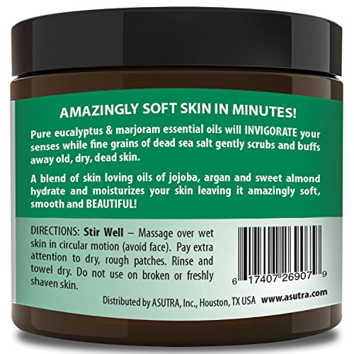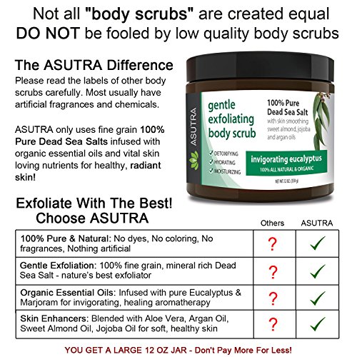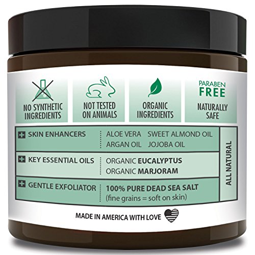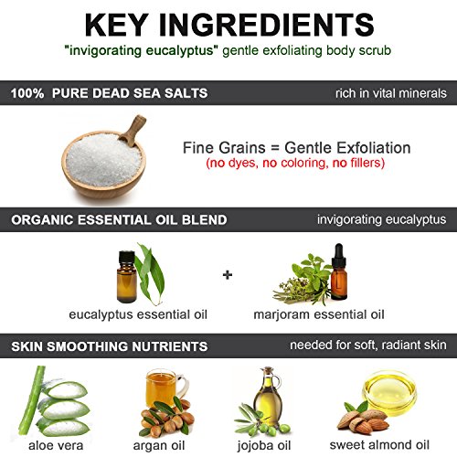 ORGANIC Exfoliating Body Scrub - “INVIGORATING EUCALYPTUS” - 100% Pure Dead Sea Salt Scrub / Ultra Hydrating & Moisturizing with SKIN SMOOTHING Jojoba, Sweet Almond & Argan Oils - 12oz