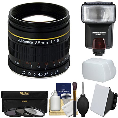 DigitalMate digitalmate 85mm f / 1.8Aspherical망원 렌즈with 3UV / CPL / nd8필터+플래쉬+분출구+키트for Nikon DSLR Cam