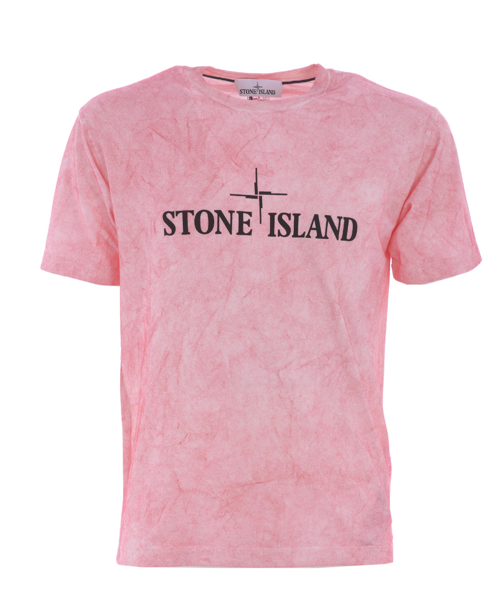 T-shirt Stone Island in cotone tinto in capo Rosa. Colore spruzzato ad effetto 3D. Stampa logo frontale. Girocollo. Manica corta. Misura in foto S 100% cotone
