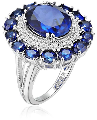 Sterling Silver Oval Shape Created Sapphire and Created Ceylon Sapphire with Round Created White Sapphire Cocktail Ring, Size 7