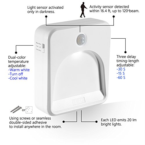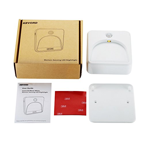 Keword 0.2W Motion-sensing LED Night Light, Cool White and Warm White Dual-Color Adjustable, Turn off the Lamp Time Adjustable, Battery-operated, 1-Pack