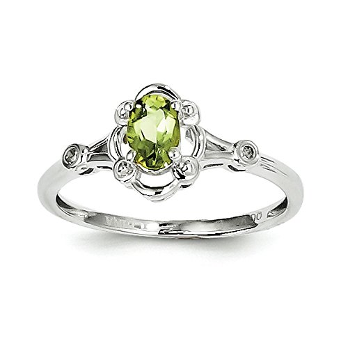 -. Title : 925 Sterling Silver Rhodium-plated August Stone Peridot & Diamond Ring