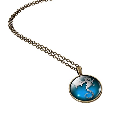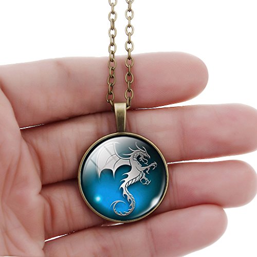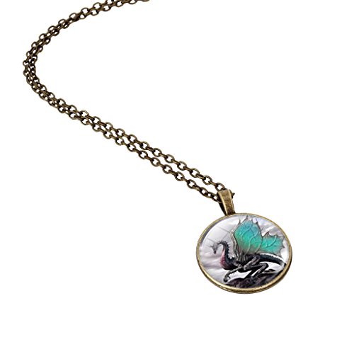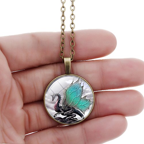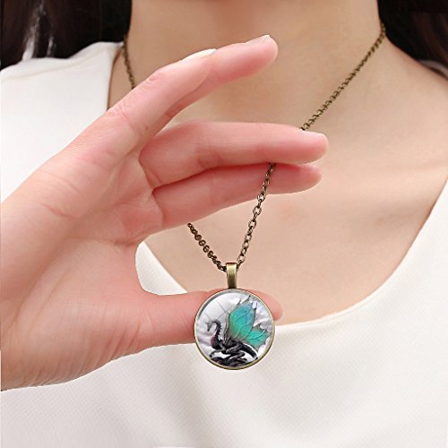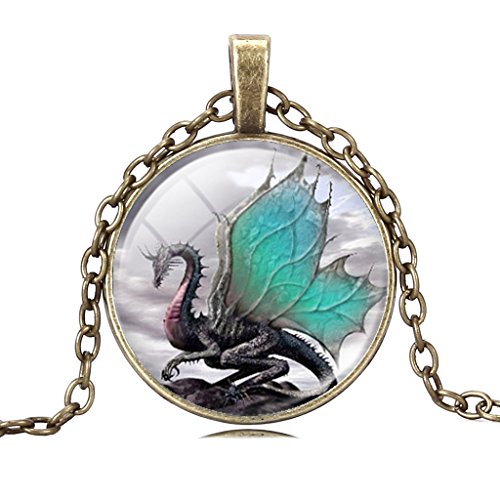 -. Title : Jiayiqi Vintage Dragon Pattern Art Pendant Glass Time Gem Chain Necklace Christmas Gift for Women Mens