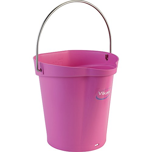Vikan 56881 Plastic Round Heavy Duty Pail with Stainless Steel Hanger, 1.50 gal, Pink