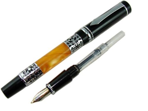 -. Title : Bookworm Celluloid Flower Pattern Chinese Calligraphy Nib Pen