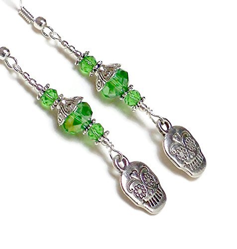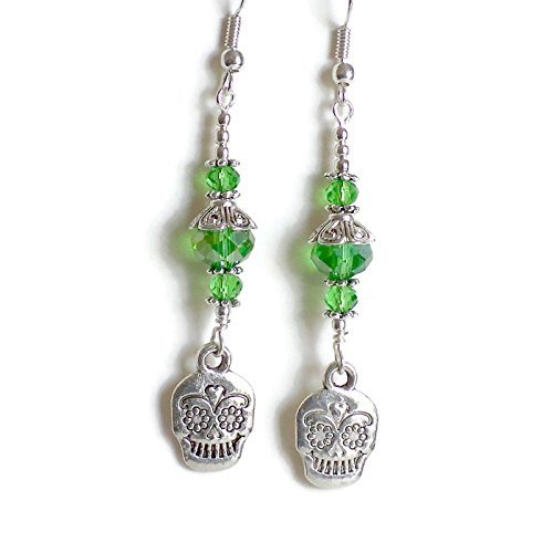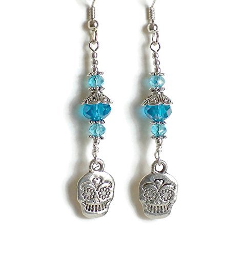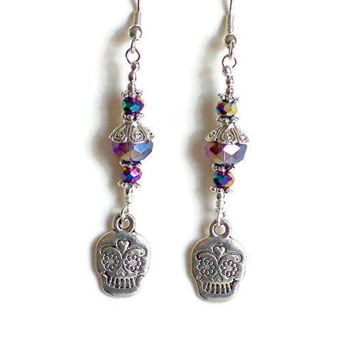 -. Title : Sugar Skull Crystal Drop Earrings * Day of the Dead