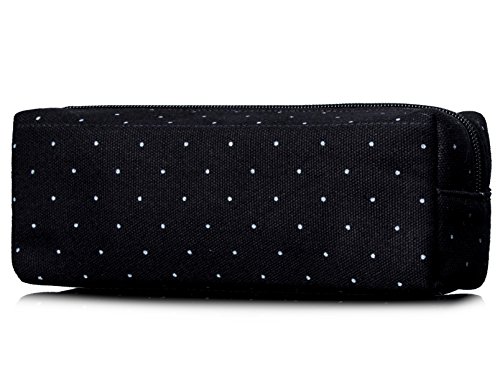 Students Pencil Case, Cute Canvas Women Zipper Pencil Pouch Pen Bag for Kids Black