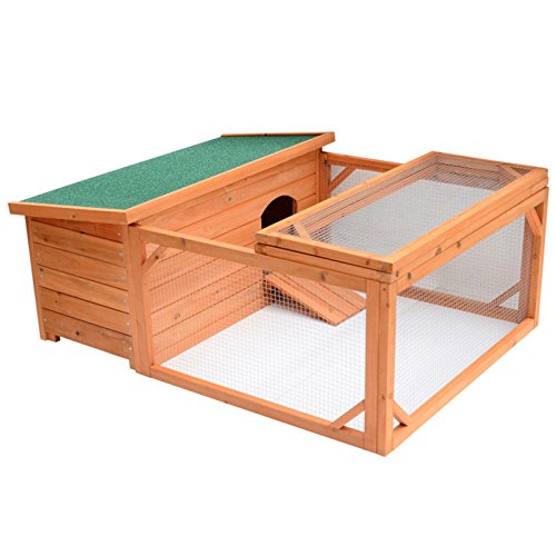 - Feature : Overall dimensions: 49.5L x 39.5W x 19.75H in. / Animal capacity: 1-2 / Includes hutch, ramp, and run / Weather-treated non-toxic fir wood construction / Roof access to hutch