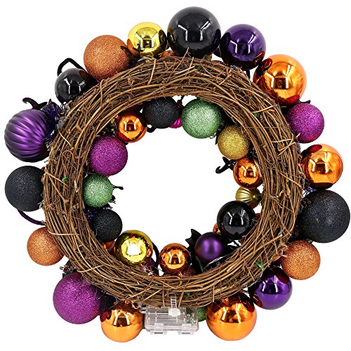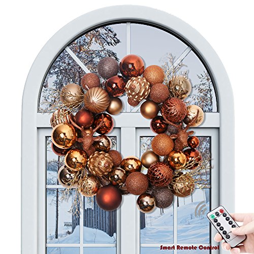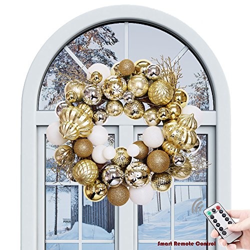 Mix-material of velvet, plastic balls, tinsel, led light string and the strong wooden cane base enrich the design of the wreath