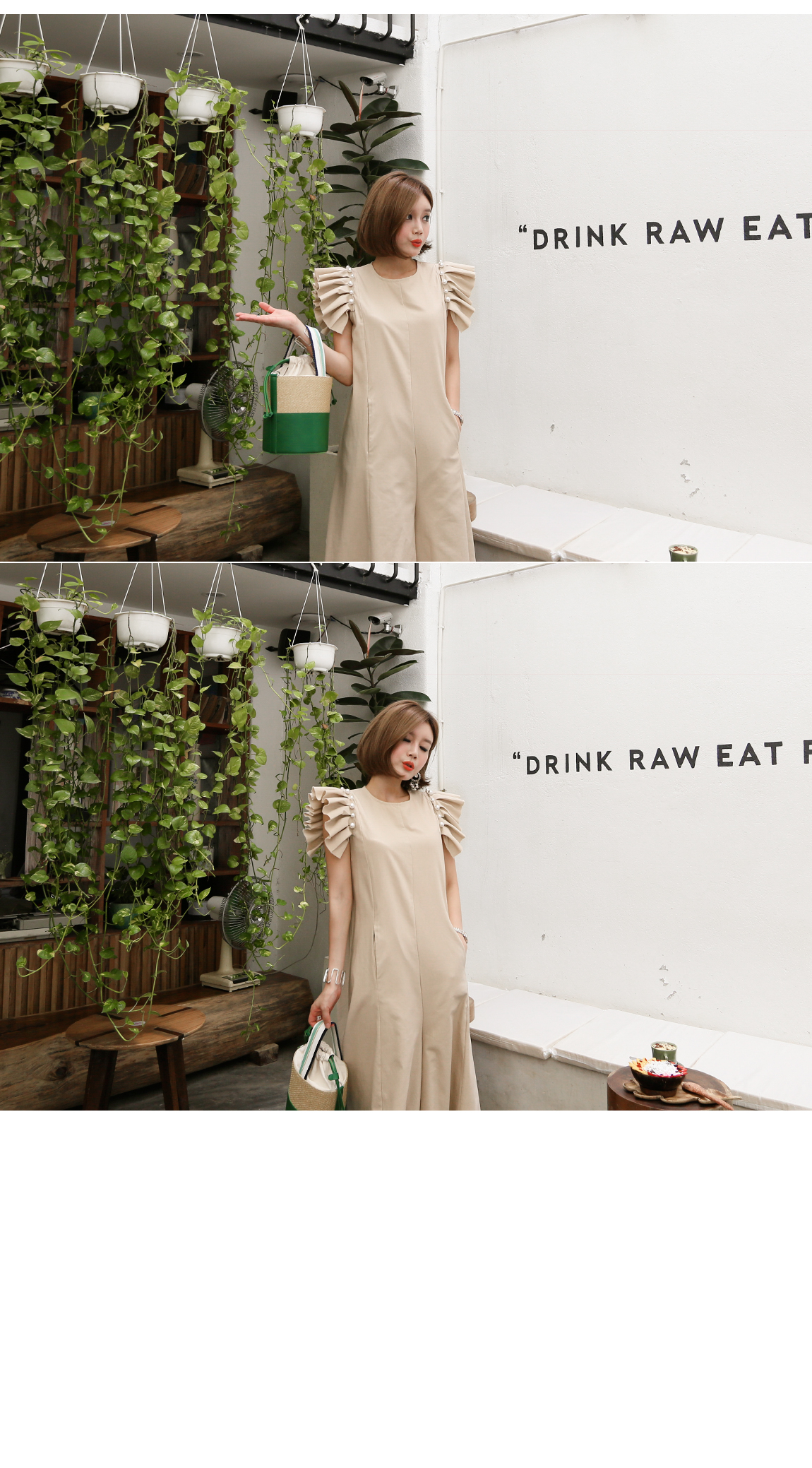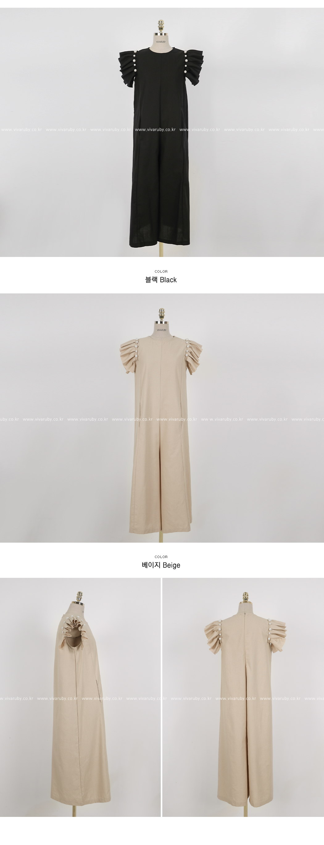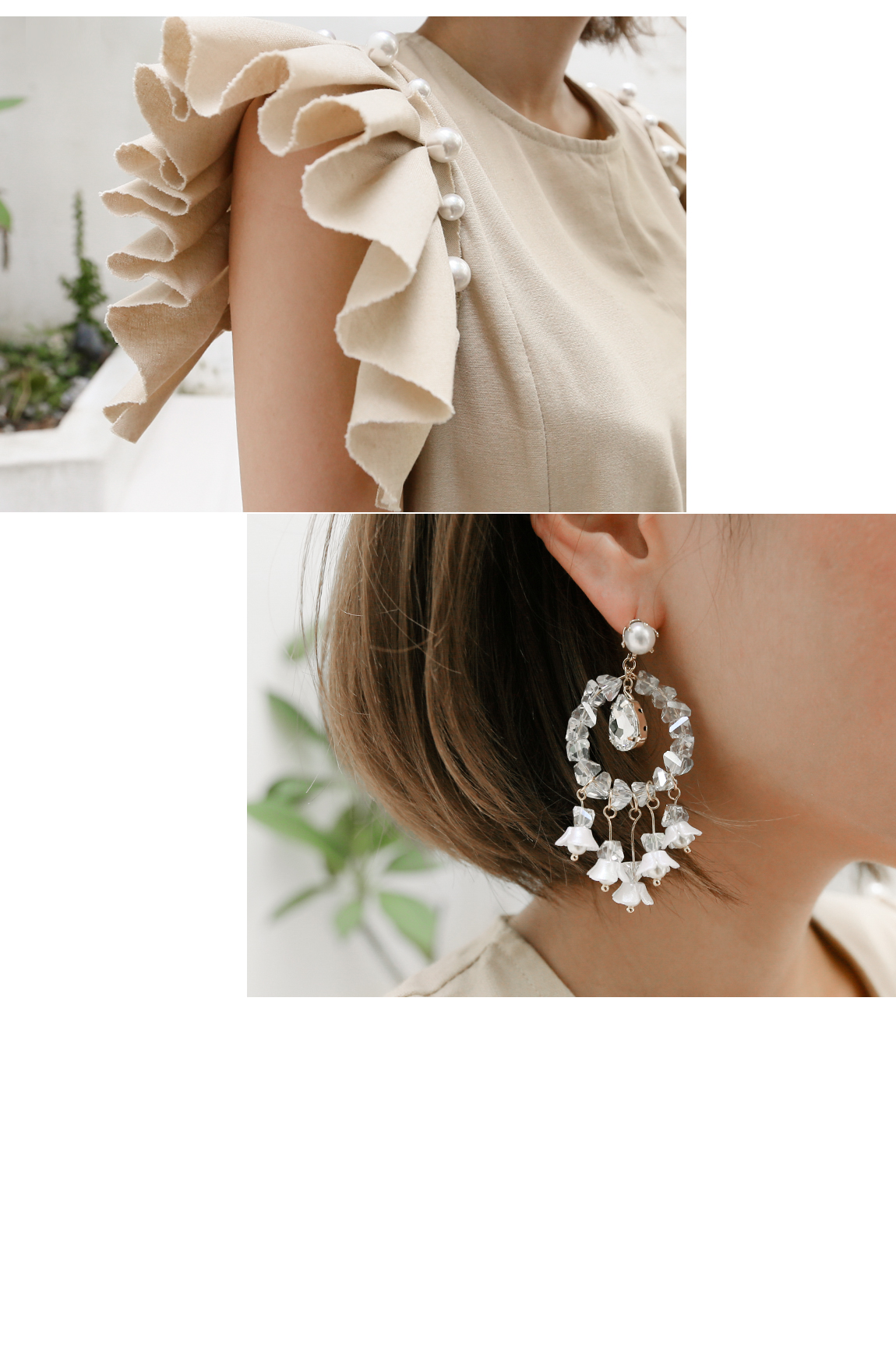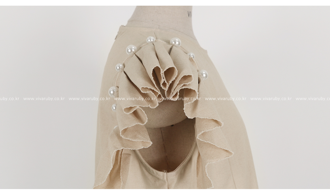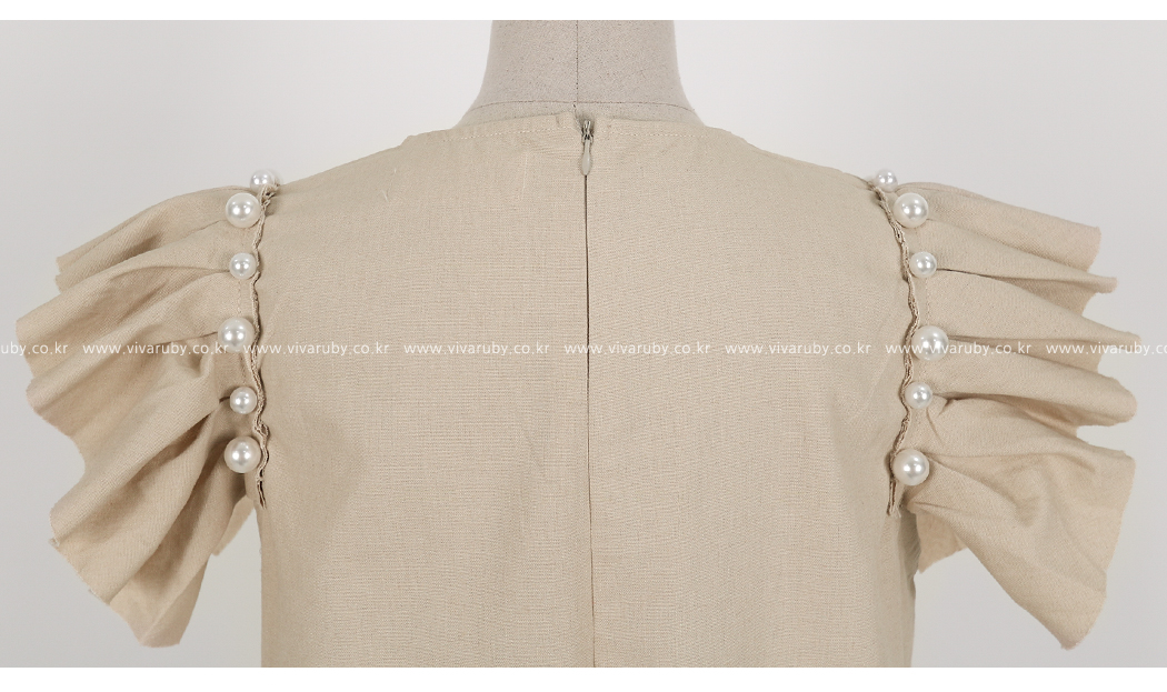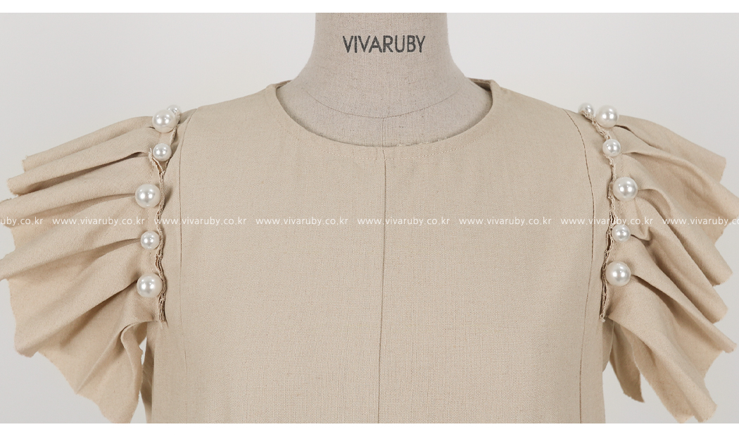 소매의 진주와 프릴 디테일로 포인트를 주었어요