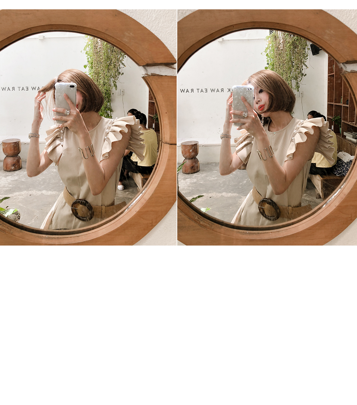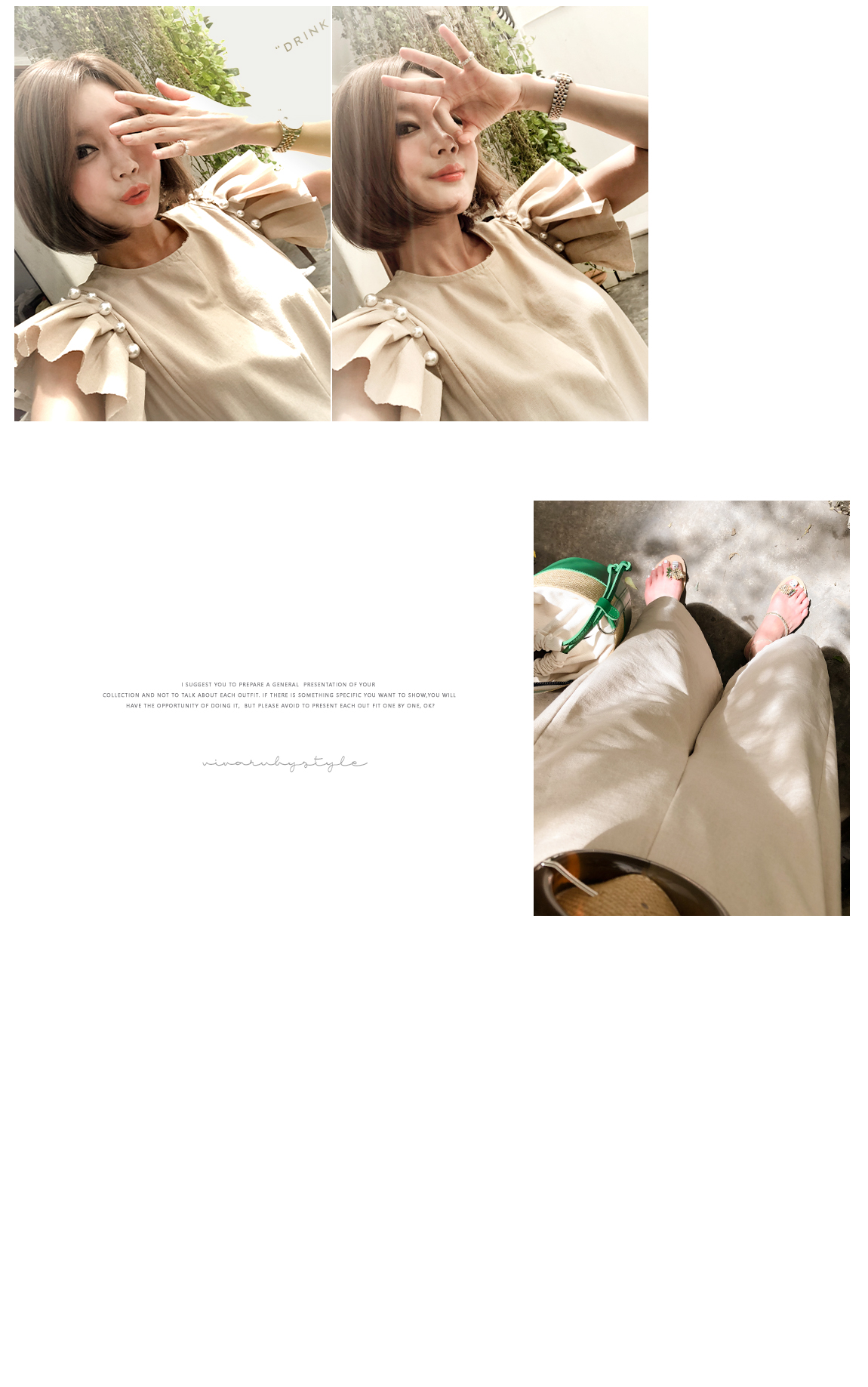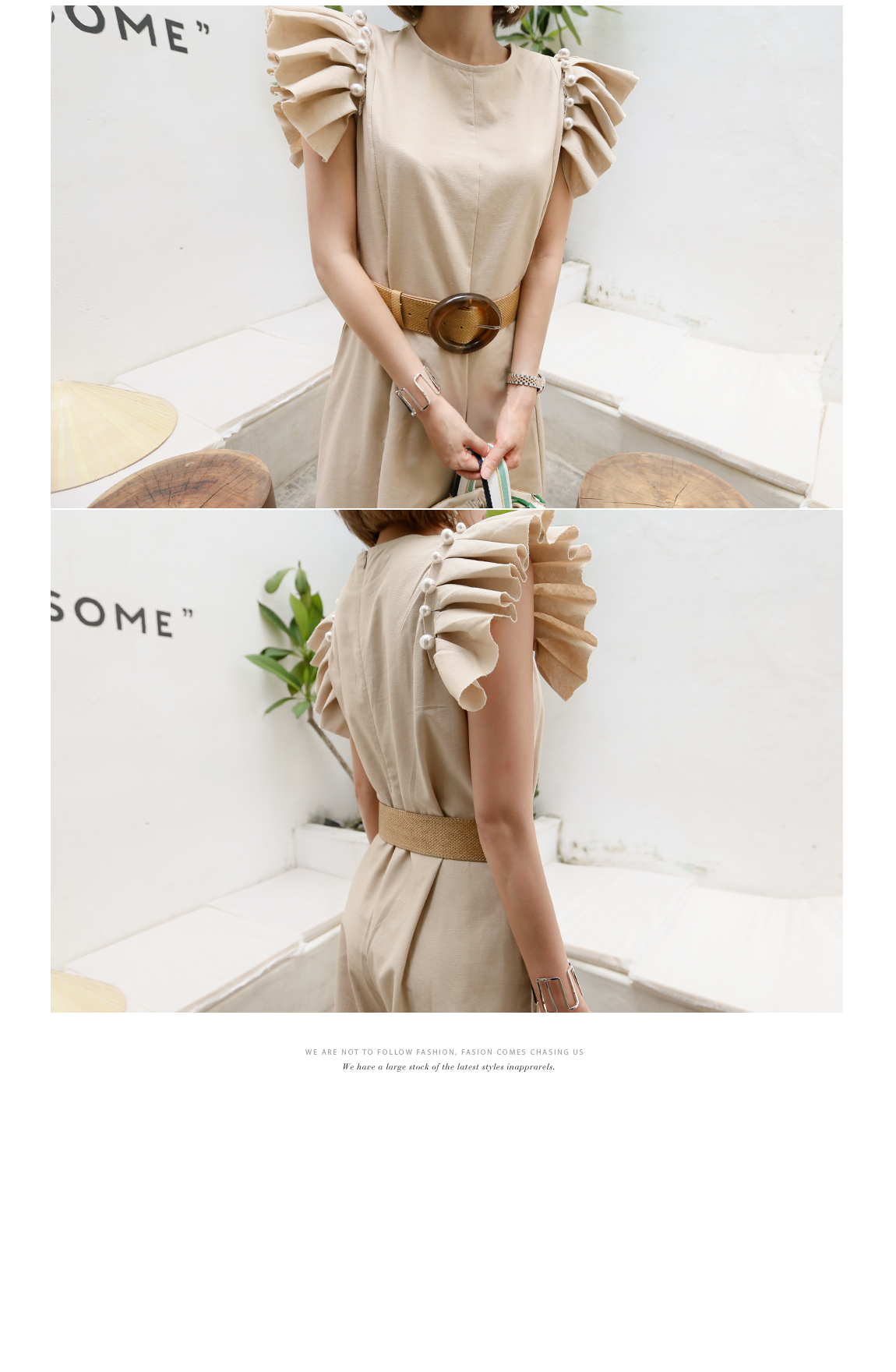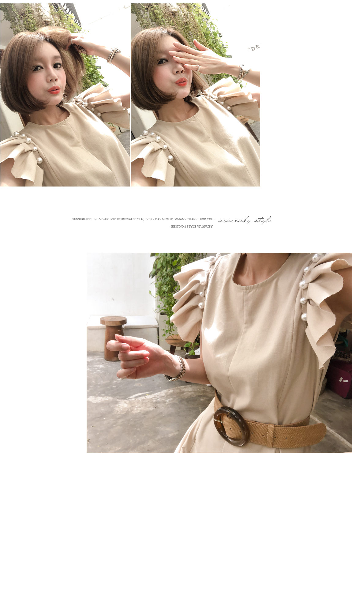 소매의 진주와 프릴 디테일로 포인트를 주었어요