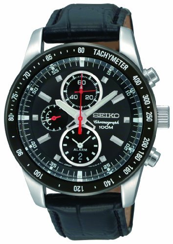세이코import Seiko Mens SNAE35 Chronograph Black Dial Leather Strap Watch【병행수입품】