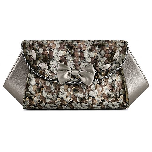 Studio : Ruby Shoo Publisher : Ruby Shoo Product Description With its rich floral velvet, gleaming metallics and pretty threaded ribbon trim, PALMA is the ideal addition to a special outfit. Featuring a detachable chain strap and magnetic clasp. Outer: Textile Lining: Textile Width:310mm Height:130mm Depth:55mm Strap length:820mm Strap Drop:380mm 0