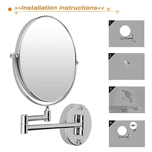 1x and 10x magnification options to make sure every detail of your hair and makeup are in place.The wall-mounted mirror in an elegant design has an infinitely variable swivel function,is foldable and height-adjustable. its movable arm and chrome finish make this both practical and pleasing on the eye.