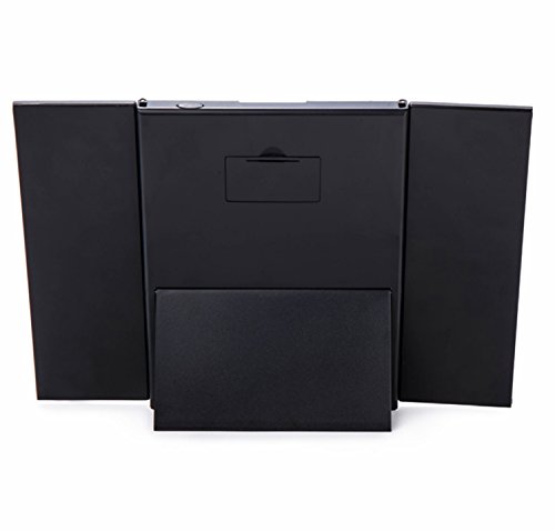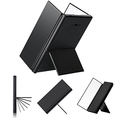 Tri-Fold Led Lighted Travel Makeup Mirror Compact Cosmetic Mirrors Pocket Vanity Mirrors with 8 Led Lights and Stand (Black, Formal)