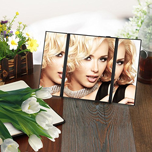 TRI-FOLD DESIGN: The makeup mirror can open or fold it when not using to protect it away from the dust or other scratches. Easy for take away and daily maintenance.