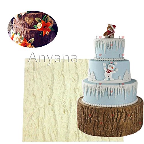 Anyana Fondant Impression Mat 7.3 inch Tree Bark texture Design silicone imprint mold icing candy embossing mould gumpaste cake decorating sugarcraft Wood Panel tools lumberjack