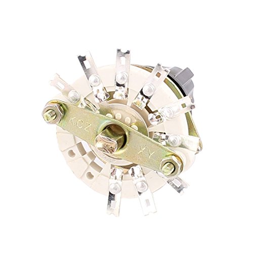 -. Feature : Product Name: Rotary Switch; Country of Manufacture: CHINA; Material: Metal, Ceramic, Plastic / Net Weight: 52g; Package Content: 1 x Rotary Switch;1 x Plastic Cap; Model: KCZ1*8 / Main Color: White,Silver Tone; Dimensions(Not IncludeTerminals): 34 x 44mm/1.33'x1.71'(D*H); Male Thread Diameter: 10mm/0.39' / D-Shape Shaft Diameter: 6mm / 0.24'; D-Shape Shaft Length: 10mm / 0.39' / Pin Number: 1 x 9; Contact Type: 1 Pole 8 Throw