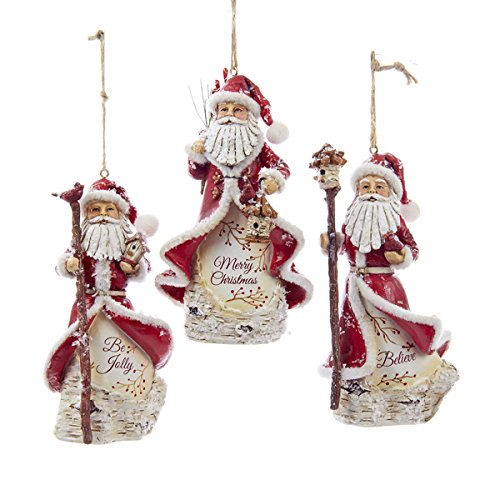 Kurt Adler 5.2" Resin Birch Santa Ornament 3/asstd: "merry Christmas", "be Jolly" & "believe".