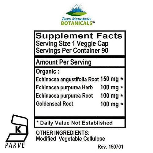 -. Title : Echinacea Goldenseal Capsules - 90 Kosher Vegetarian Caps - Now with 450mg Organic Echinacea Goldenseal Complex - Nature's Gold Standard Supplement by Pure Mountain Botanicals