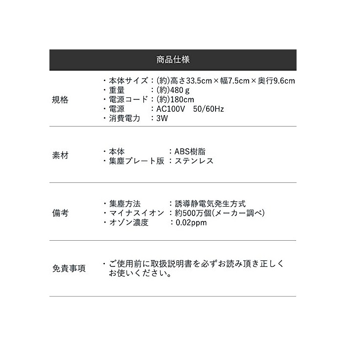 오존과 마이너스 이온의 W파워에 공기 중의 먼지 화분 등을 흡착합니다!