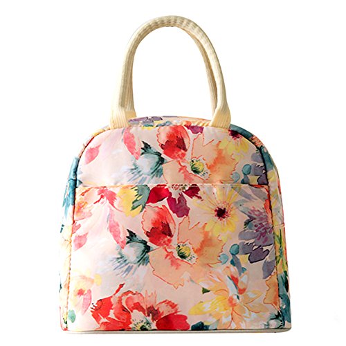 Moosoo Thicker Insulated Lunch Bag Reusable Durable Handy Portable Thermal Lunch Tote Lunch Box Cooler Bag Lunch Organizer for Work School Outdoor Picnic BBQ (Flowers)