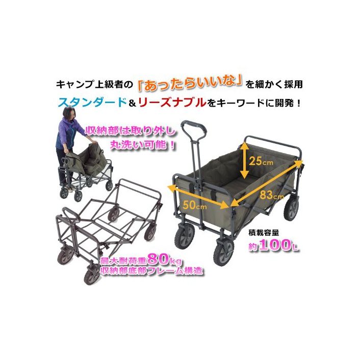 원본상품명: テントファクトリ キャリワゴン オルランド ワゴン (容量約100L 積載重量約80kg カバ取り外し丸洗い可) オリブグリンTF-MXCW-OLG