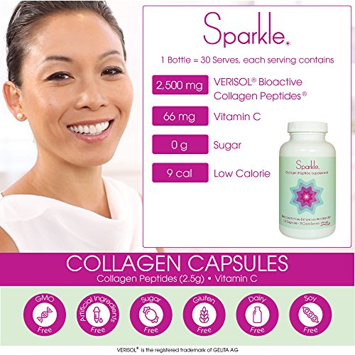 Studio : Sparkle Collagen Publisher : Sparkle Collagen Binding : Health and Beauty Product Description Radiate beauty from within by including Sparkle Collagen Peptide Supplement Capsules in your morning routine. As convenient ready-to-consume capsules, Sparkle Collagen Peptide Supplement Capsules are a simple no-fuss easy way to provide your skin with a daily dose of the key nutrients to help promote collagen production. Clinically proven to increase collagen levels in your skin, Sparkle Collagen leads to fuller plumper skin in around 4 weeks, leading to increased skin elasticity and a significant reduction in wrinkles 0