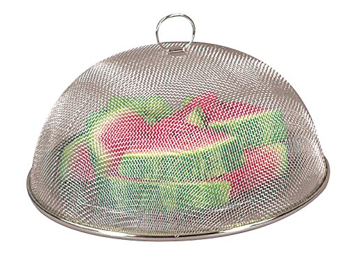 This chrome mesh food cover is just what you need if you enjoy outdoor dining. Keep the bugs off your food. It fits plates and bowls up to 11.5 inches in diameter. Measures 11.75 inches diam., 5 inches high.
